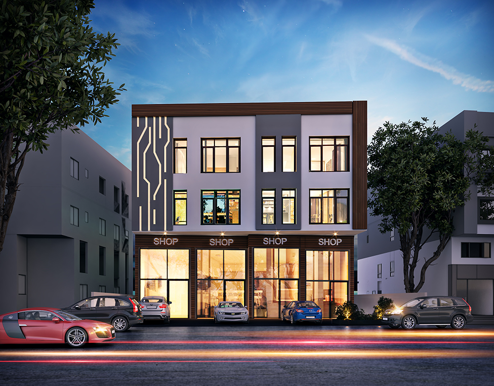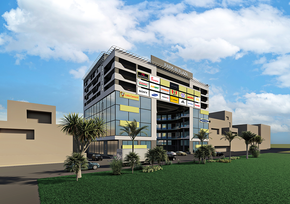 7- storey office building with attached car parking building. The layout maintains flexibility of switching from minimum office space per floor to four offices of 250sq.m each per floor.